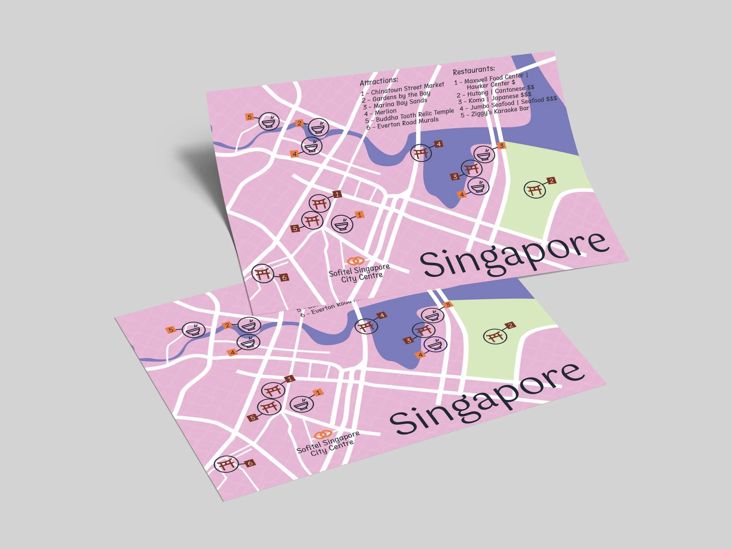 For a freelance client, I developed a 3D graphic for their company website showcasing their unique printed brochures. I also designed and illustrated printed city maps, name tags, and activity props that were included as a package of event materials for three corporate culture-building retreats led by Moniker Partners.